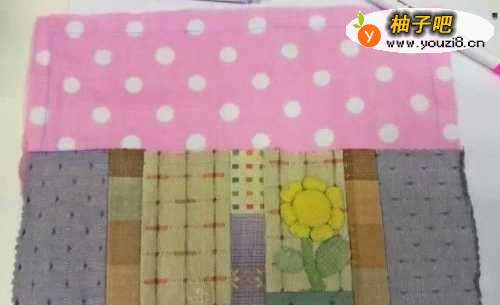 3将表面的各种布拼接好,包括向日葵图案,然后用电熨斗将背面烫平,再烫上薄衬。