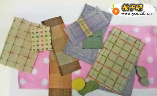 2按照设计尺寸,剪裁所有的表布拼布、里布以及向日葵图案的布。