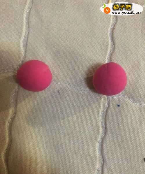 拿出红色的彩泥揉成两个圆形,在拿出绿色的彩泥揉成4个圆形。