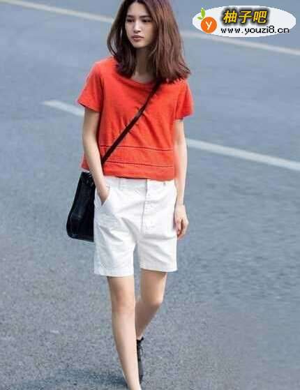 红色宽松短袖搭配白色五分短裤,非常清凉,同时很休闲,能玩转整个夏天。