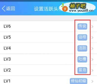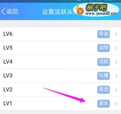 8【配置活跃头衔】就点按下之后,点按LV1的头衔,如图。