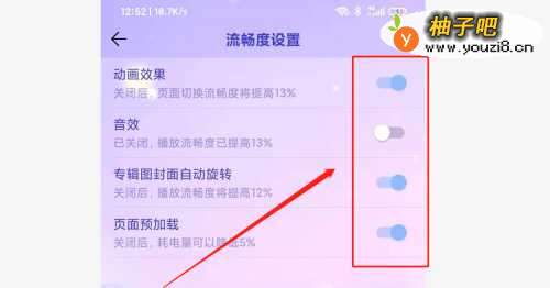 6第六,关闭相关效果,提升流畅度。在流畅度配置中心选择“动画效果”、“页面预加载”等,点击关闭即可。