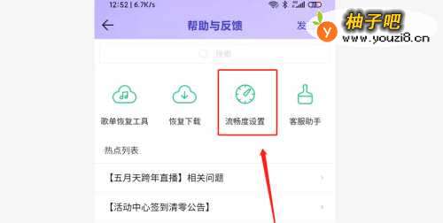 5第五,选择“流畅度配置”。在帮助与反馈页面找到顶部“流畅度配置”,点击进入配置页面。