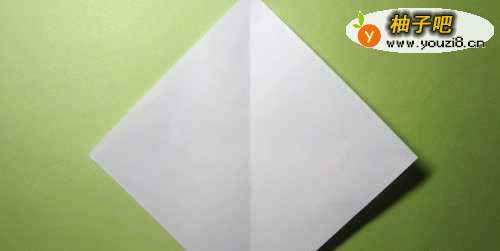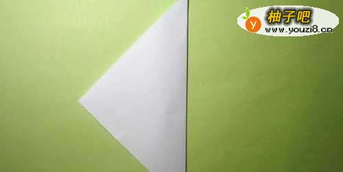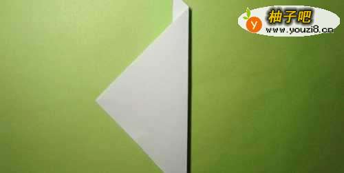 2接着,把折纸右边的三角纸边向左对折一次,并压平整,如下图所示。