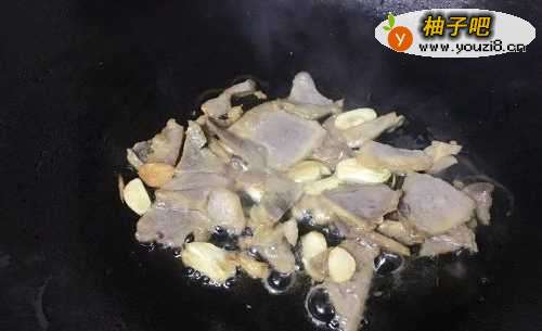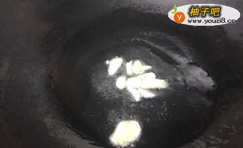 4锅烧热之后倒入少许油,油温9成热的时候放入切片的蒜瓣煸香,蒜香味出来之后倒入切好的腊肉煸炒。
