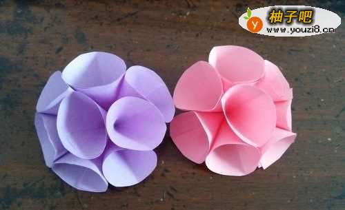 6然后再用胶水把它们粘在一起,两朵花就做好了。