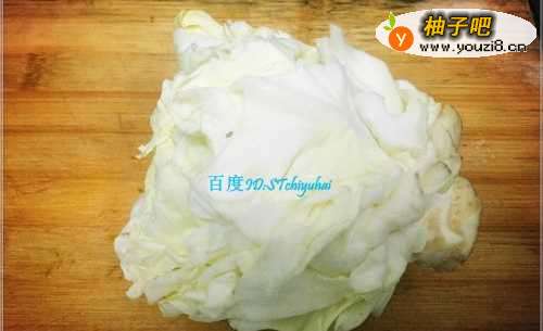 将剩余的一个包菜心拿出来,然后将包菜心层层剥开,然后过水清洗几遍,捞出沥干备用。