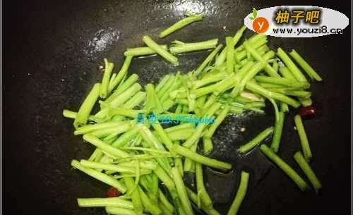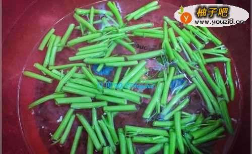 2家里刚好有空心菜杆,此前买空心菜,菜叶已经用于油切做成另外一道菜了,将剩余的空心菜杆尾部比较脆的部分摘下来,折成小段状。