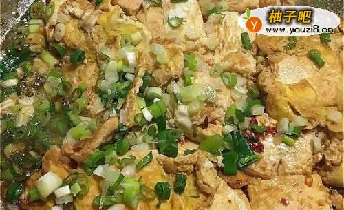 5加入葱花和少许辣椒,稍微滚一下就可。