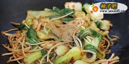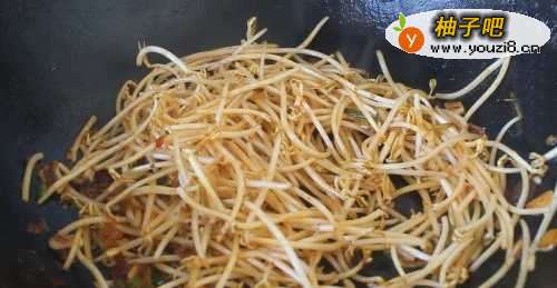 4放入豆芽翻炒。