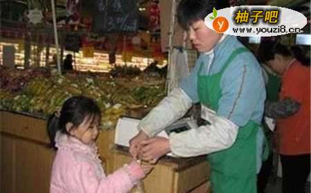 3带孩子买菜购物,让孩子学会与售货员阿姨交往,还会得到称赞呢,好开心啊。