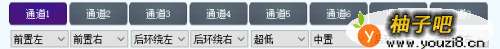 6在通道二下方的下拉条选择前置左,以此类推定位八支音箱;