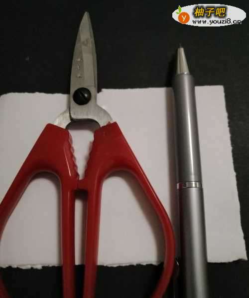 第一步,先把一张纸,一支笔和一把剪刀准备好。