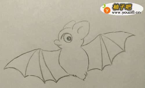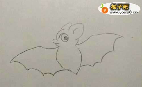 6然后在身体两侧画出蝙蝠翅膀的形状。