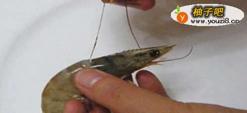 2将虾清洗干净,去掉头部里的黑东西,并挑掉虾线,清理掉虾里的脏东西,这些是不能吃的,如果须太长,也能用剪头剪掉。
