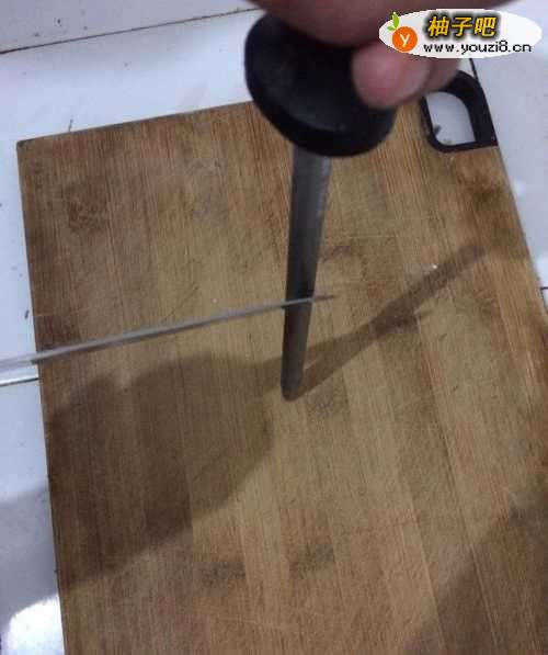5接着换到磨刀棒的左边,与前面动作一样拉磨。左右两边轮换着拉磨。