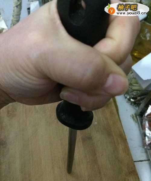 2第一种磨刀办法:用右手大拇指朝上握住磨刀棒的把手。使磨刀棒成垂直站立。