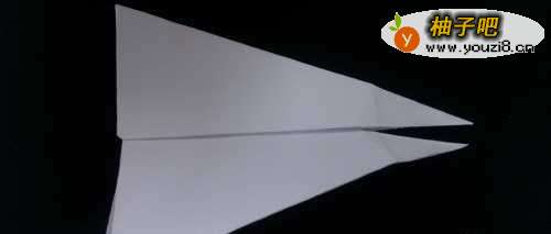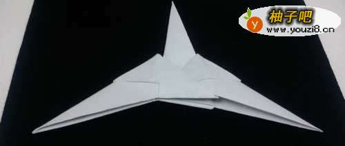 8制作飞机尾翼,将一种能折好的部件,沿着中间在三分之一剪开,并向外折叠,如图。