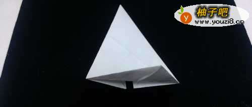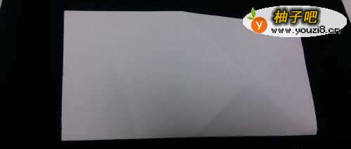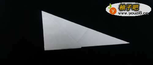4折大角:然后,再以对折折痕对之帽基准,将纸再次折叠,让整个边与折痕重叠,如下图。