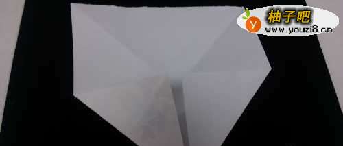 2对折:将正方形纸对折一下。