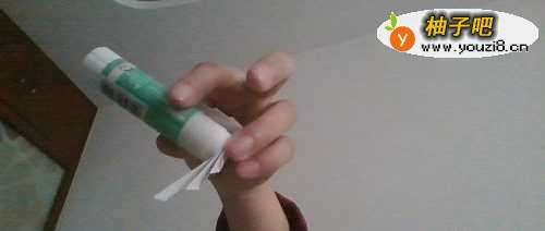 5我们设置手指将折纸的2边固定起来。15秒左右胶水干了,我们就能松手了。