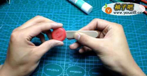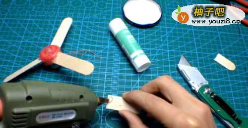 5其实不用说,这一步也是如此吧。 作为马达和橡胶绳之间的纽带,切成一片冰淇淋的小块。