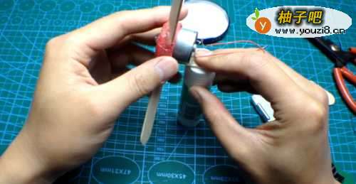 1、首先,将切好的扇子的叶子裁成三段。2、和切好的扇子盖不上,用胶粘剂也不结实。3、只要稍微擦一下弧度就行了, 贴的时候要注意角度。4、用4S手机拍摄动画时,由于存储器已经满了好几次,所以安装了电机和扇叶,都没有电机和扇叶。5、其实不用说,这一步也是如此吧。 作为马达和橡胶绳之间的纽带,切成一片冰淇淋的小块。6、 拆掉线,有红,黑,绿,白四条线,光是红线和黑线,也要揭开橡皮棒的盖子,开两个小孔穿线。7、 链接时,请勿反向连接。 某些马达在回放时会反转。