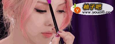 7然后就是第二个重要部分,唇妆!选择一个粉色系的唇膏,让整个妆容都充满少女感!