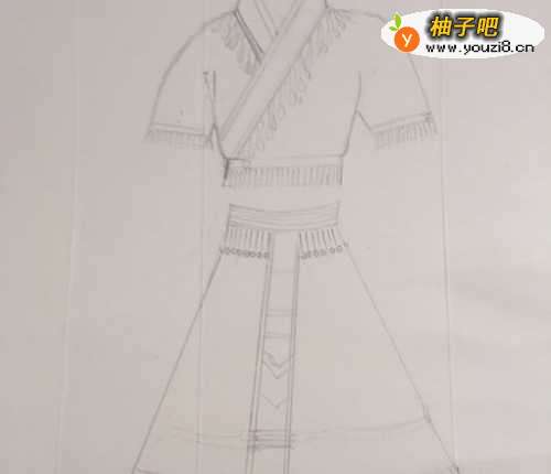怎么样画一件瑶族女士衣裙套装的简笔画