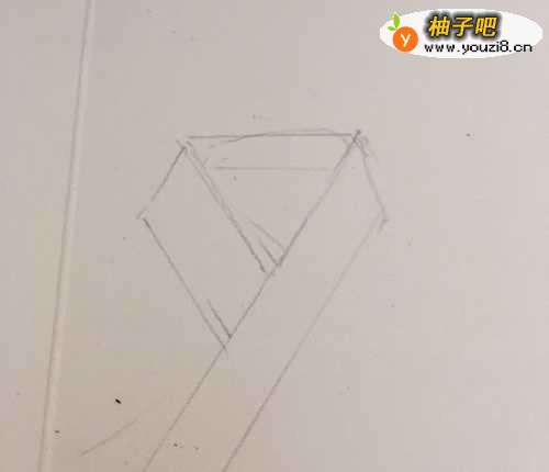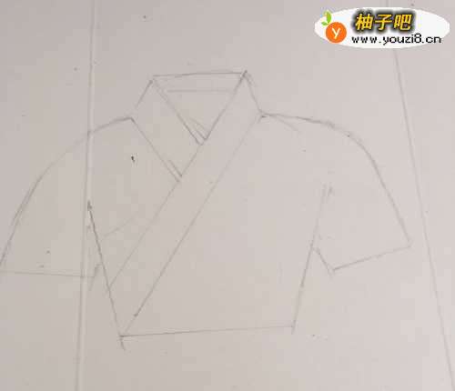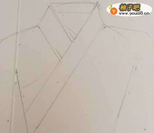 2第二步 以三角形为标准 画一个类似朝鲜领的领子