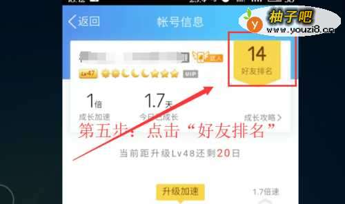 5QQ好友等级排名浏览步骤五:点击等级图标跳转页面以后。QQ用户能浏览到自己在所有好友中的排名。