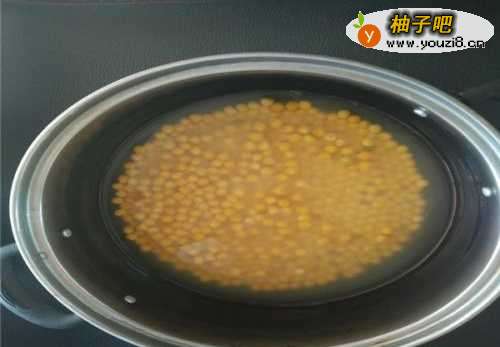 3用大火煮开水,煮开后调小火,再煮20分钟左右,煮到用小勺能轻松把豌豆碾烂就能,煮的时候要注意看,不让水满出来。