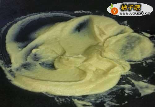 5把搅拌好的豌豆泥放锅里炒,先用大火煮,煮沸了再调成小火进行翻炒,炒到豌豆泥变粘稠,滴落后不会马上和锅里的豌豆泥融为一体,就能关火了。