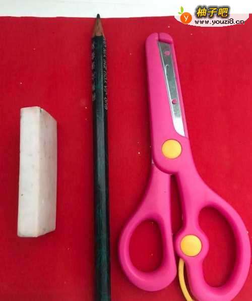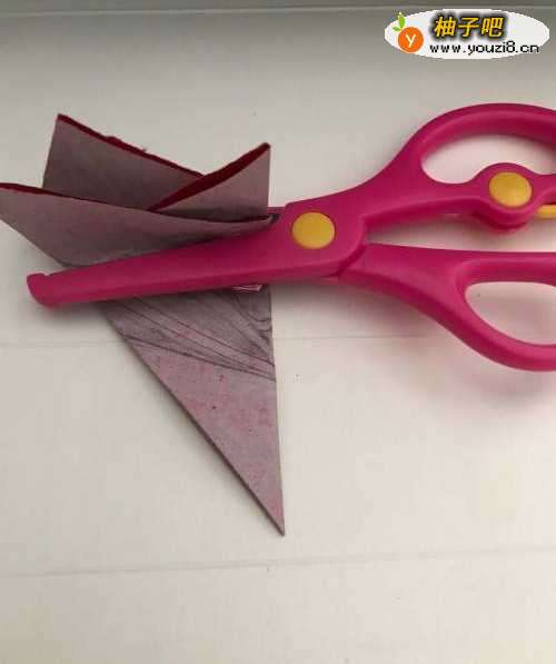 6第六步 都画好之后 再涂实一下需要剪掉的部分 然后拿起手工剪刀剪去图案外面多出来的彩纸部分