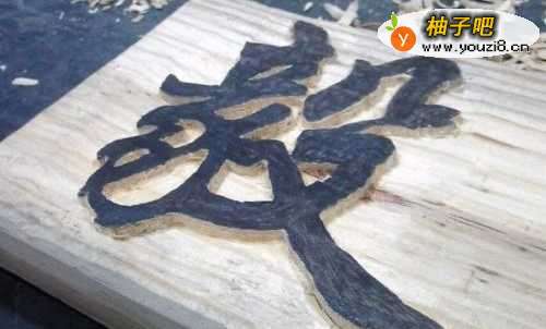 先竖直往下刻,再侧着挖字旁边,挖出阳刻的字体