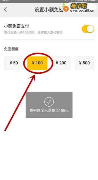 7进入【配置小额免密页面】后,选择自己需要的免密额度即可