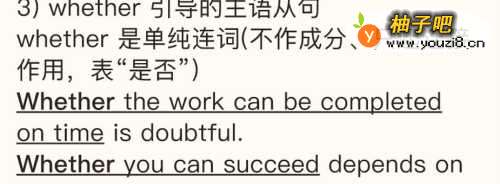 接下来我们讲解一下whether和if在啥时候不能替换。第一种情况whether引导主语从句、表语从句或同位语从句如:Whether he can come to the meeting on time depends on the traffic