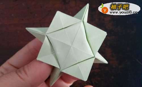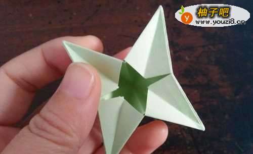 6把底部向外撑开,四星盒子就折好了。