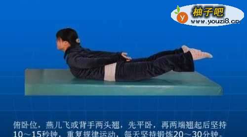 有空的时候,在床上或沙发上,练习“飞燕”动作。方式:趴在床上,头抬起,脚抬起,手臂向后,坚持30几分钟左右。看似简单的动作,却调动了全身的经络。做完会感觉很累,但却很舒服,锻炼了颈椎。
