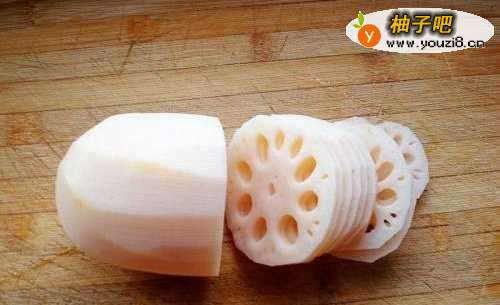 把莲藕去皮洗净,切成2毫米的薄片,不能切的太厚了,这样炸起来比较好炸而酥脆。