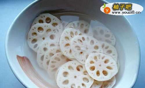 3把藕片捞起来沥干水分,鸡蛋打散搅拌均匀