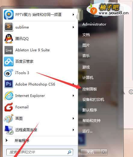 首先开启电脑,点击左下角的“开始”然后找到“控制面板”点进去。