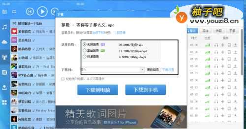 5点击以后就会跳出来一个页面让你选择音乐音质和下载位置,自己能根据自己的需要选择,选择完后点击下载就能了。