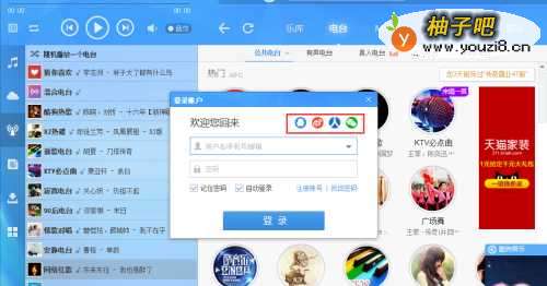 2启用酷狗音乐并且登录,有酷狗账号的话就用酷狗账号登录,没有的话能用QQ啊 人人啊等等账号登录。