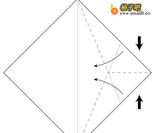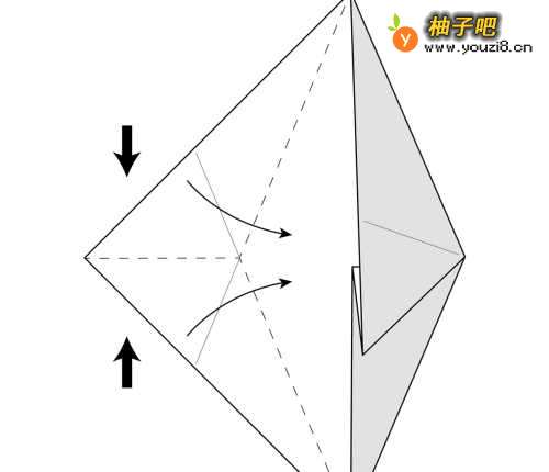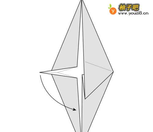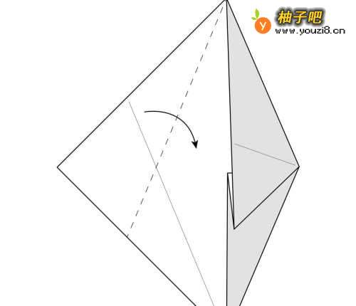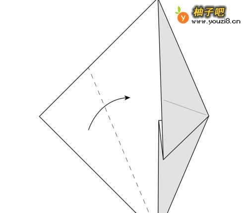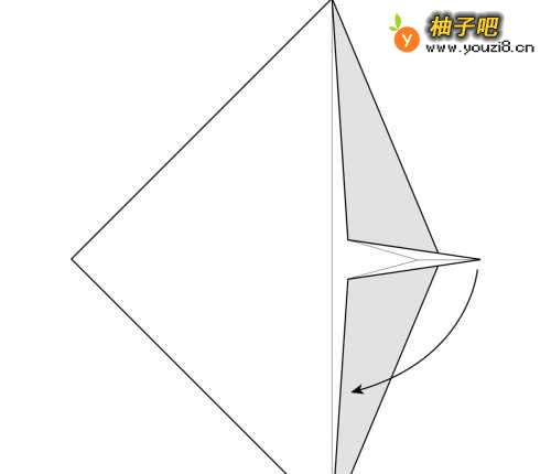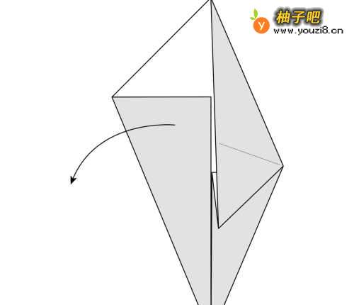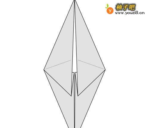 13把纸的瓣折到底部,把所有的东西都折平。这样,鱼式基础折纸就完成了,你能在这个基础上折叠各种各这样的鱼。