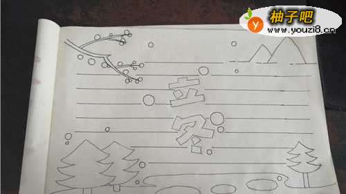 5我们把整幅图,用用尺子画横线连贯起来,在画上一朵雪花,如图所示。
