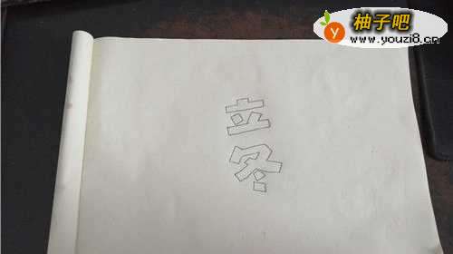 首先准备好绘画用具,我们在纸的中间先写上立冬两个字,字体能随意设计。