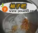 取50g粉丝,烧热水,用热水把粉丝烫软。时间不要太久,把粉丝烫过了,就不好吃了。