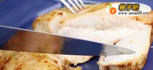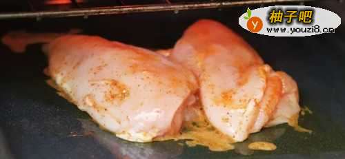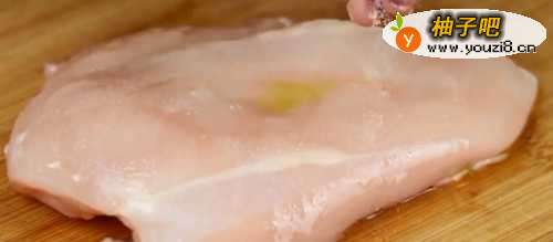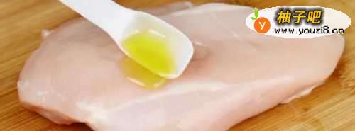 5用几茶匙橄榄油擦拭鸡块表面。因为无骨去皮的鸡肉脂肪含量低,所以在烤箱中很容易变干。
