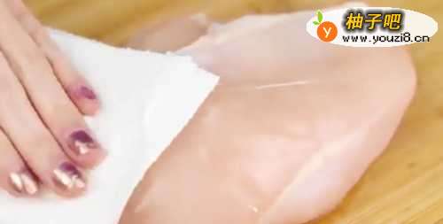2从冰箱中取出鸡胸肉,如果使用冷冻鸡肉,请在微波炉或一盆冷水中解冻。